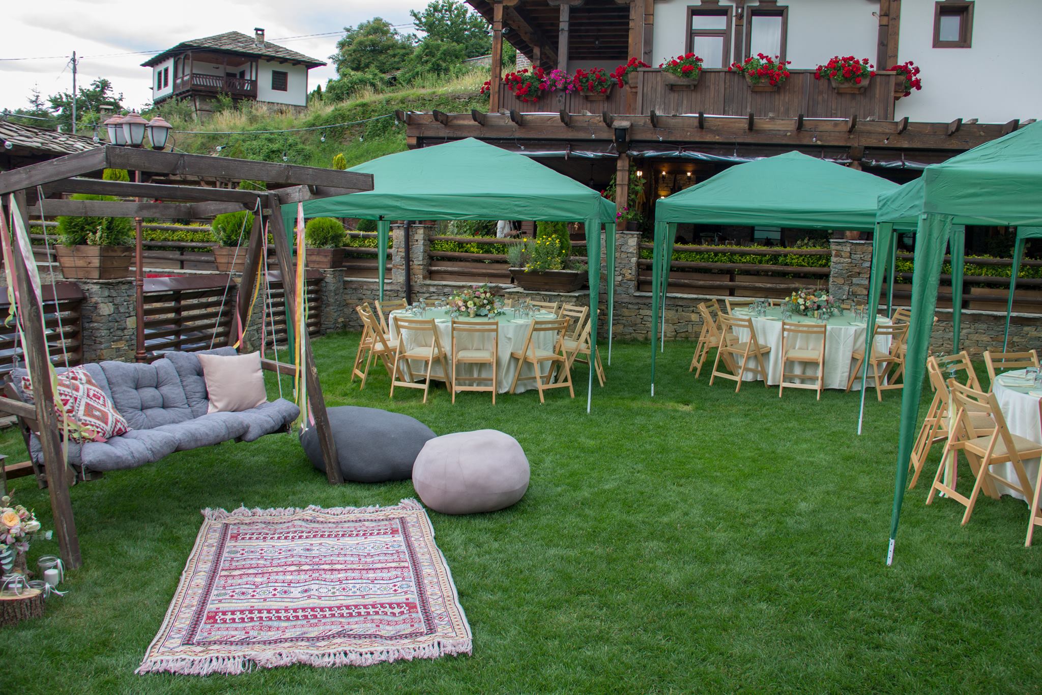 Механата на къща за гости Родопски Кът разполага с 80 места в основната си зала, както и допълнителни места в лятната градина под навеса, откъдето пред очите ви се открива гледка, която думите не могат да опишат. Гледка, която ви носи една истинска емоция, кара ви да се вълнувате, защото там горе усещате величието на природата…